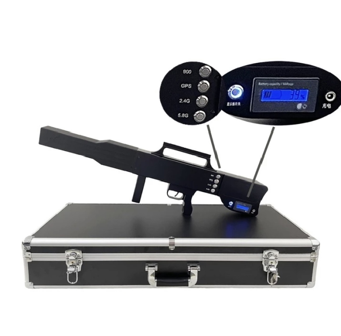 Ружье от дронов и беспилотников Гарпия 140W блокирует каналы 900, GPSL1, WIFI 2.4Gх2 5.8G в полосе частот беспилотников. Глушилка выполнена в виде автомата, что позволяет удобно ее использовать одному оператору (причем вес не превышает 4,5 кг). В корпусе прибора расположена встроенная направленная антенна с высоким коэффициентом усиления, а также 5 усилителей с разными рабочими частотами (см. таблицу ниже), которые можно включить по отдельности или все сразу. Угол направленности антенны составляет 45 градусов. Дальность подавления сигнала с углом направленности антенн 45 градусов (500-2000 м). “Стрельба” по квадрокоптерам возможна на расстоянии аж 2 км (зависит от погодных условий)!